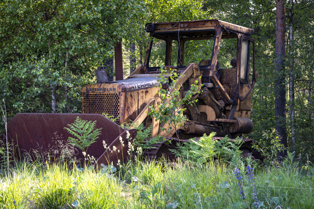 Vad gäller mina skills som stigfinnare gick gårdagens safari (vagt) ut på att hitta en övergiven schaktmaskin eller Bulldozer jag blivit tipsad om längs en grusväg nånstans i ett område, bäste bror som gav tipset var lite dimmig kring exakt var den stod. Å andra sidan hade det hjälpt föga om han varit mer precis eftersom mitt lokalsinne skulle kunna betraktas som humoristiskt om jag inte hade avskytt lyteskomik.