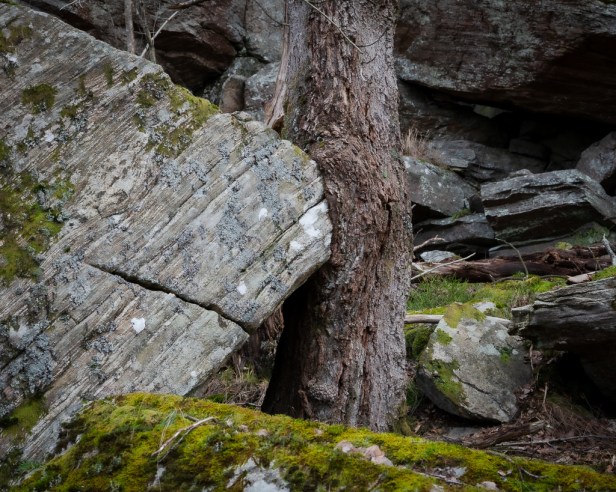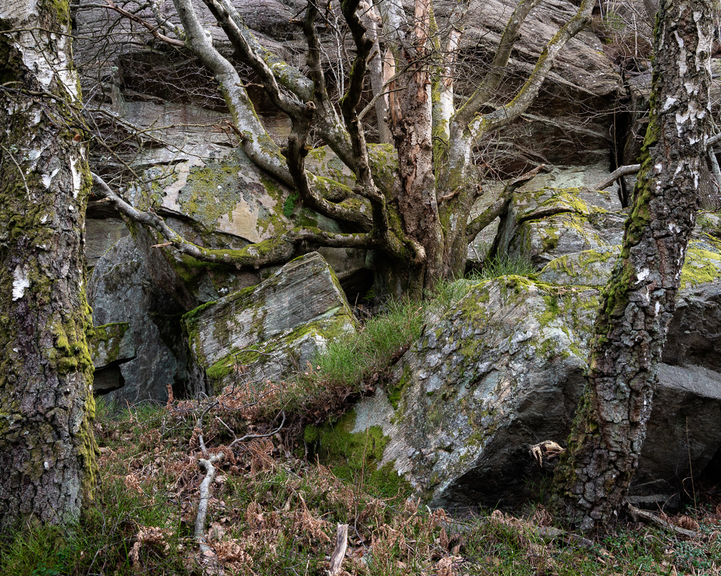 Förutom att den mer avslappnade attityden gjorde att jag skapade några bilder jag är riktigt nöjd med gav det mig dessutom en viktig aha-upplevelse kring vad det är med ”min skog” (det är inte jag som äger skogen – skogen äger mig) som får mig att återkomma och fascineras om och om igen. När man som jag bestämt att man skall arbeta i stort sett uteslutande väldigt lokalt är det en välsignelse när man upptäcker en väg till som ger inspiration. Min skog erbjuder förutom låglandsskog som är typisk för regionen också lite av en specialitet i form av vilda förkastningar, raviner och andra helvilda inslag med hälsningar från senaste istiden. Självklart har jag alltid känt en dragning till denna spänning och dramatik som jag är uppväxt med sedan barnsben. Men nu inser jag också att detta är ett av särdragen med min skog som är väl värt att förmedla.